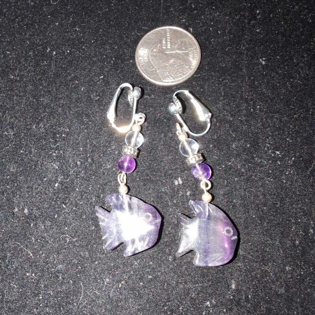 Carved Flourite Purple Fish w/Bead & Silvertone Findings