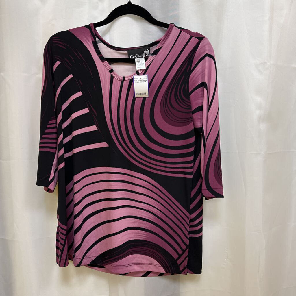 3/4 sleeve pullover. Pink and black swirl pattern.