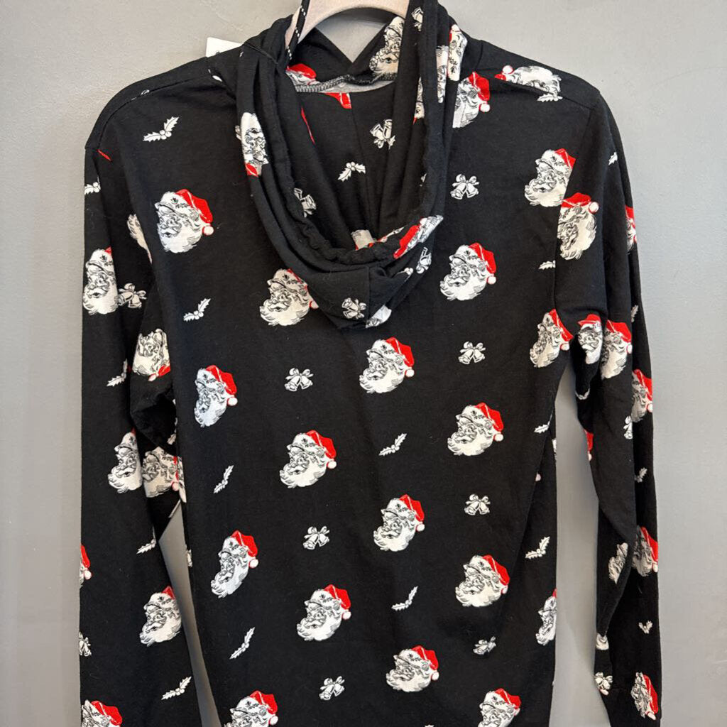 long sleeve pullover tshirt with hoodie; Santa Face print; NWT