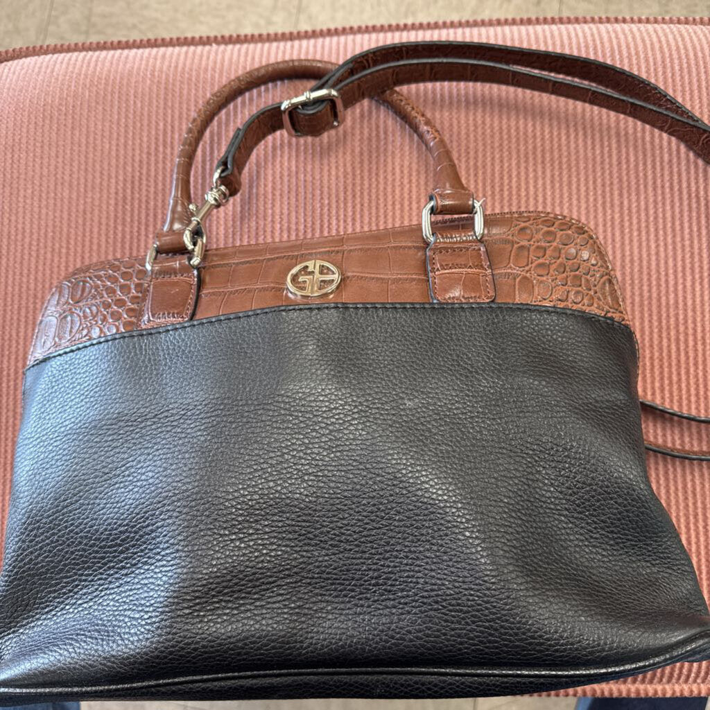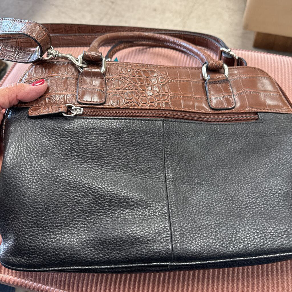Faux leather and crock embossed color blocked shoulder or satchel bag with silver tone hardware.