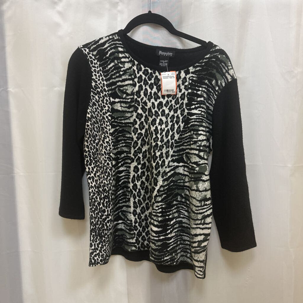 Long sleeve pullover with black leopard and zebra and hints of olive
