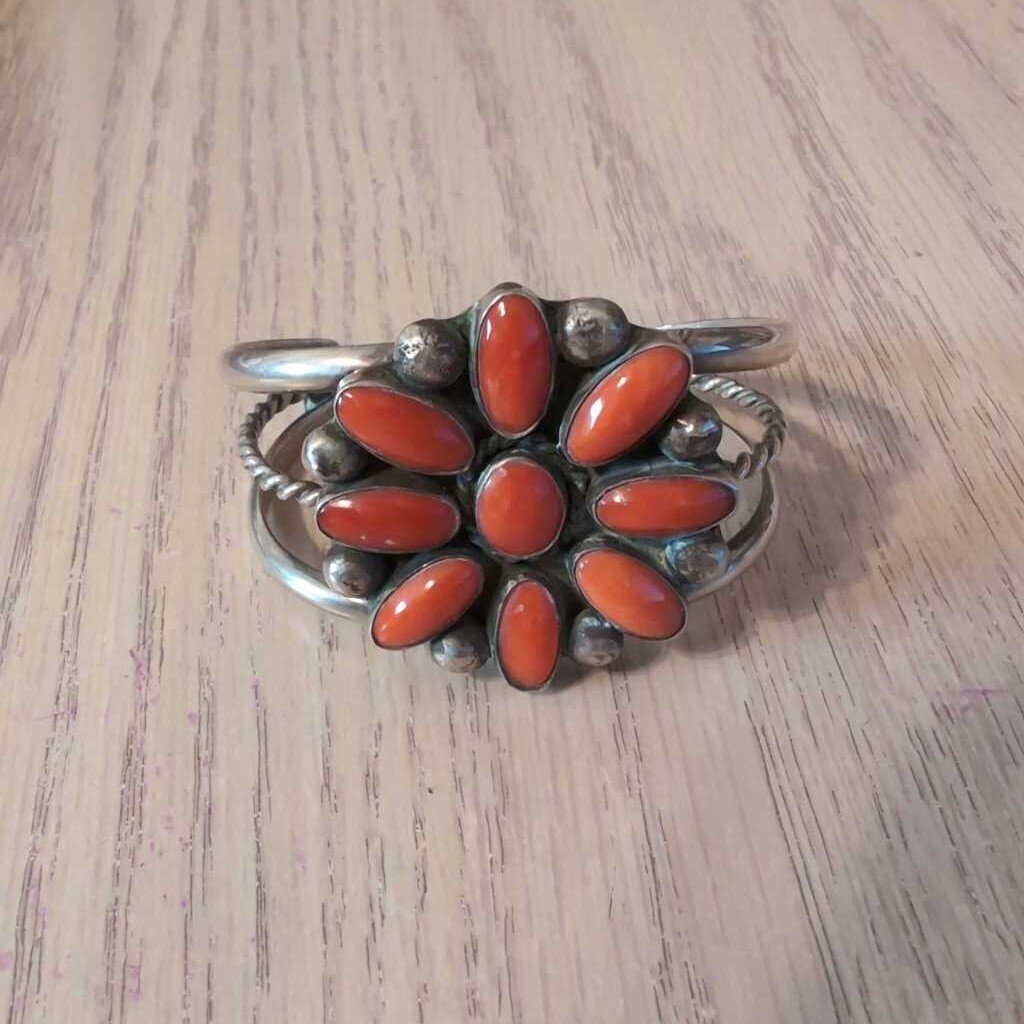 Bezel-set Coral Ovals, Vintage (Not Stamped), Flower Cluster