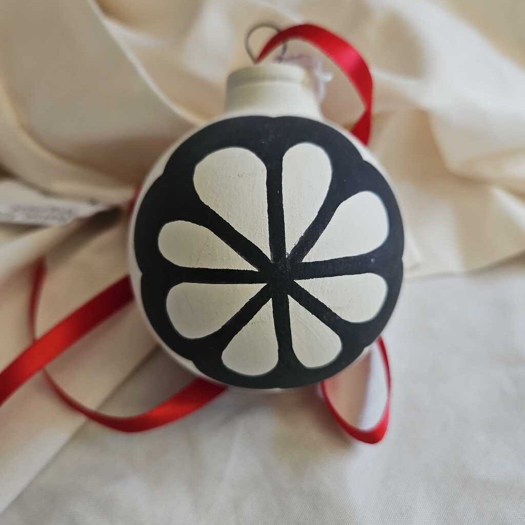 hand crafted Native American Ornament 2"D cream, black and turquiose