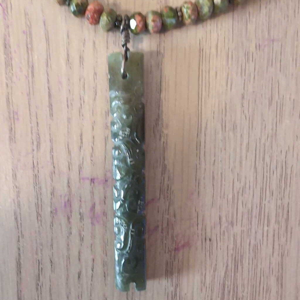 hand crafted Necklace 15" Green Tones