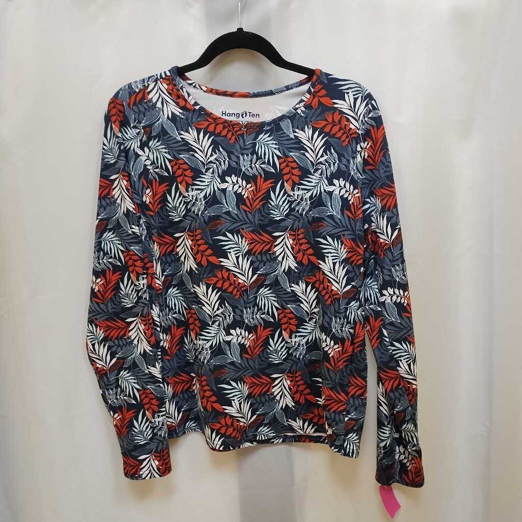 Long sleeve pullover with sun protection , palm leaves in rust , gray