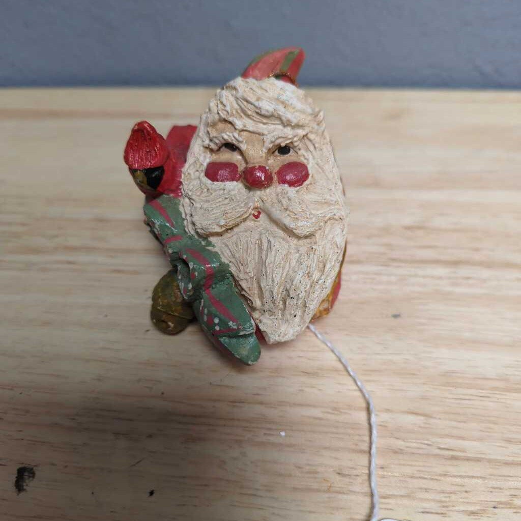 Handpainted santa head with Cardinal on shoulder and green bow