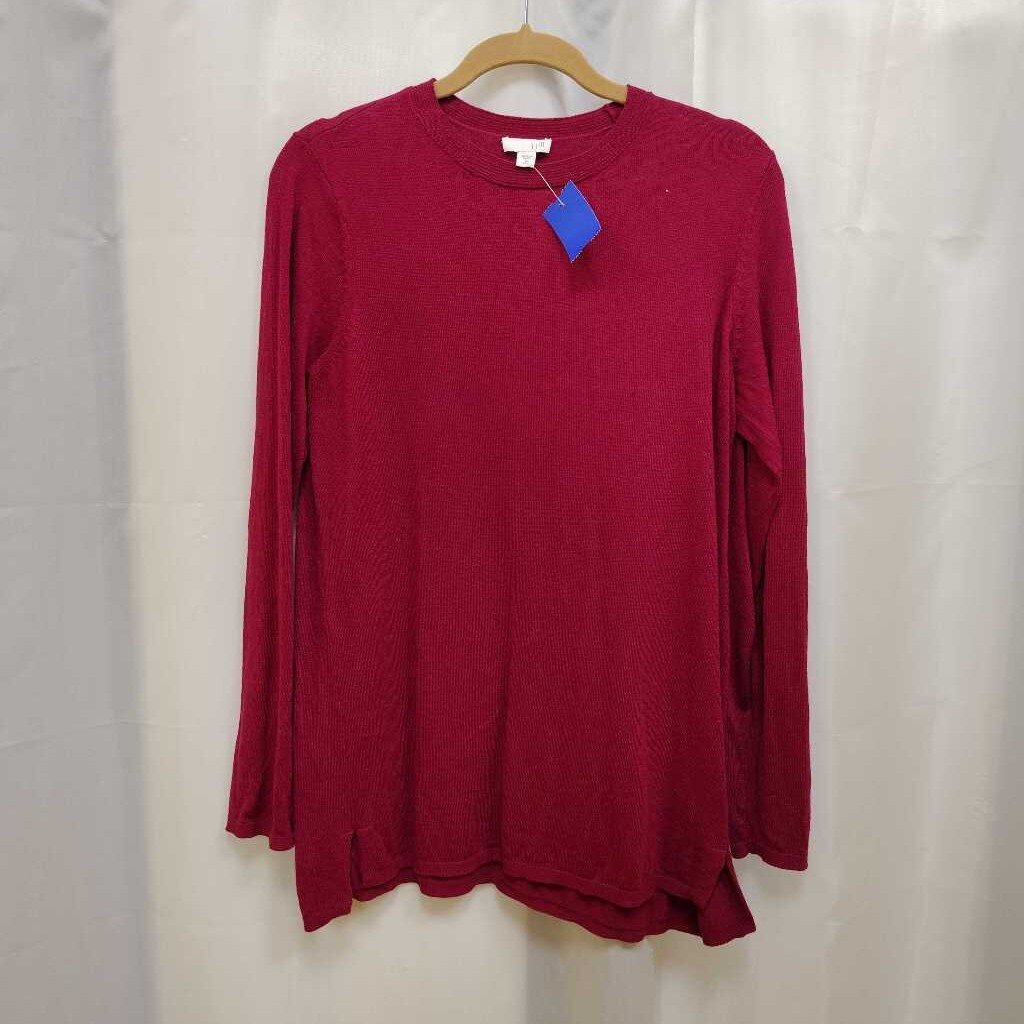 Long sleeve tunic length knitted pull over sweater with crew neckline.