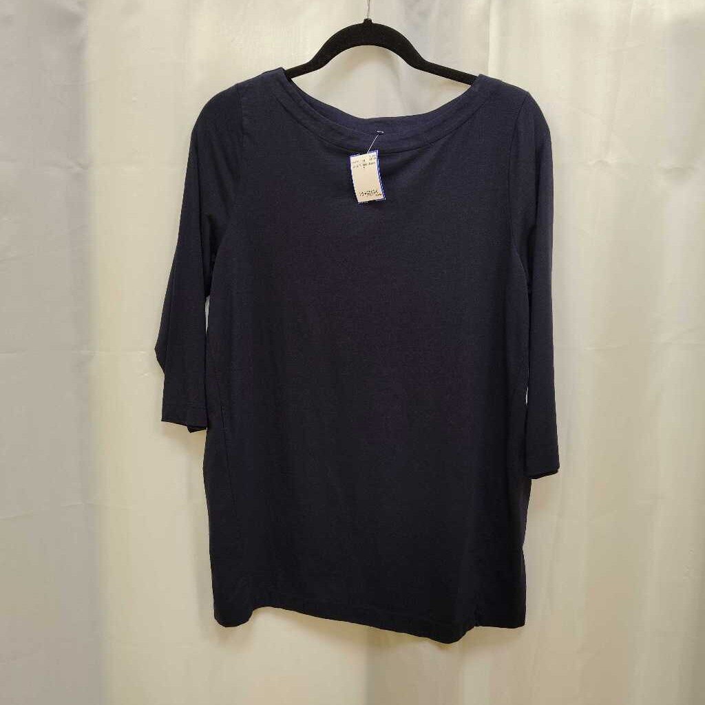 Elbow length sleeve pull over knit t- shirt with Bateau neckline.