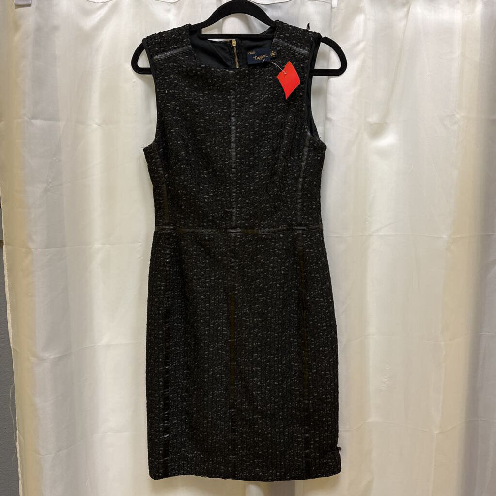 Sleeveless short body con novelty stretch ponte knit dress with black PU leather banding.