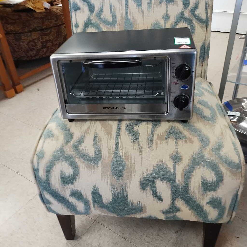 Black and silver colored Kitchen Smith small toaster oven.
