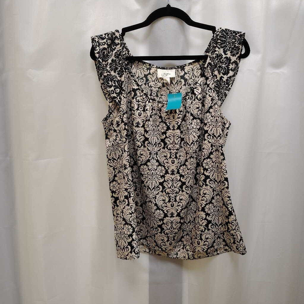 Wallpaper printed satiny pull over woven tank top with raglan ruffle "sleeves".