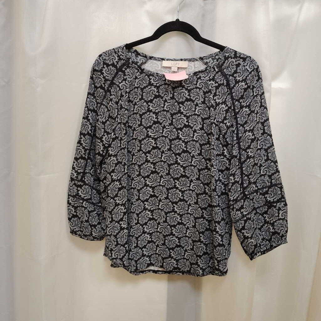 3/4 sleeves, pull on, round neck, paisley design, falls past waist.