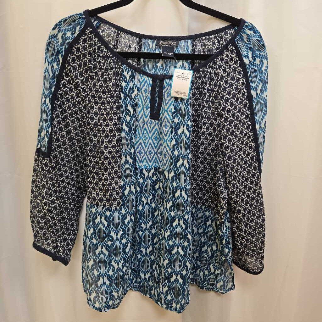 lucky brand Peasant Blouse L Navy Blue