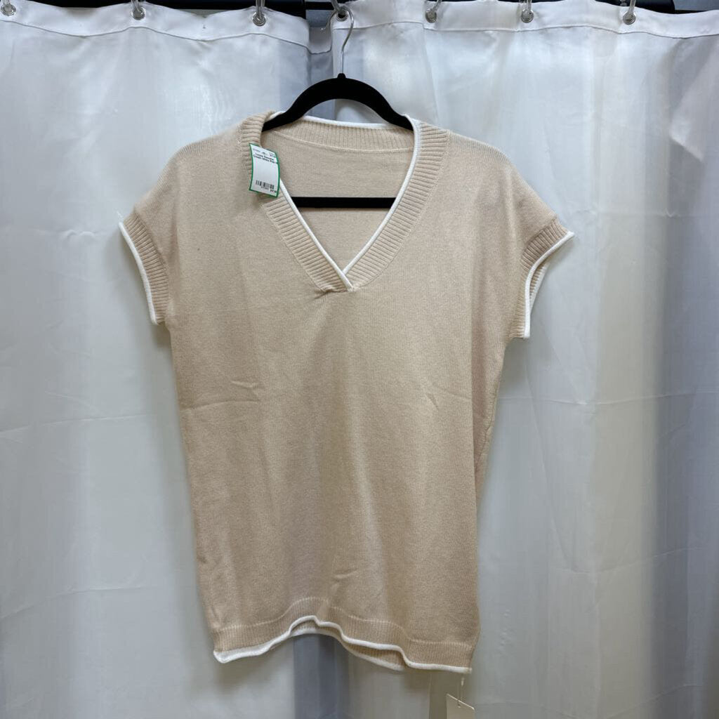 Cap sleeve pull over sweater with contrast white trim and low V- neckline, new with tags.