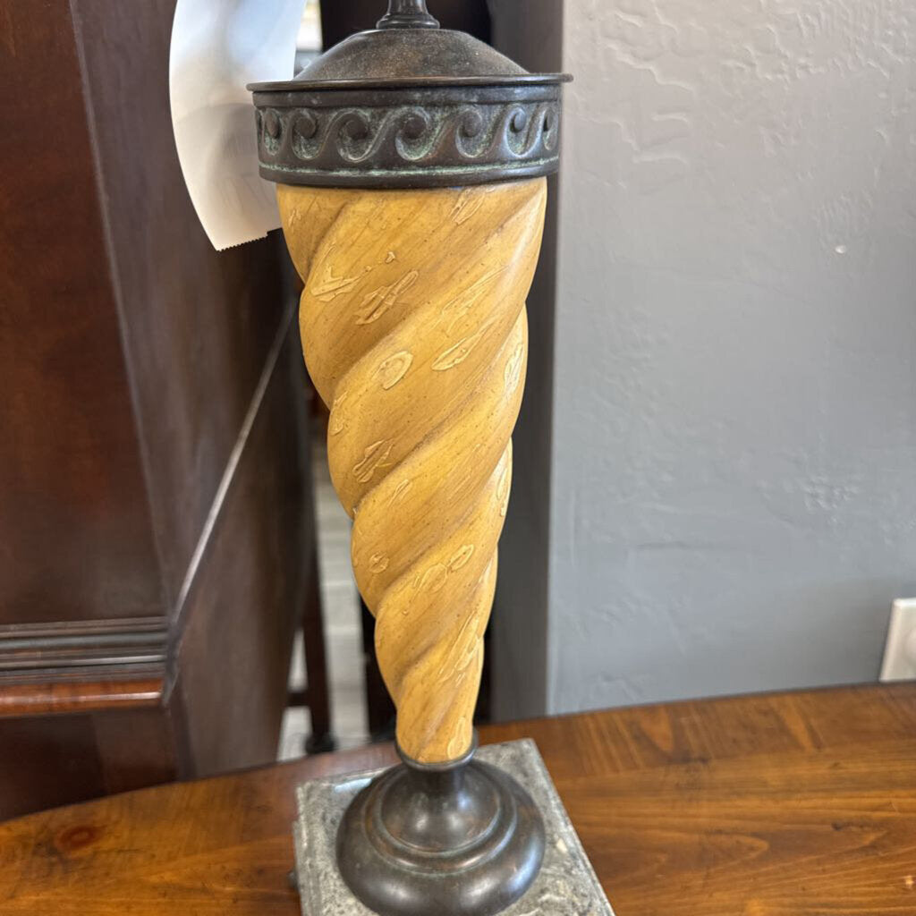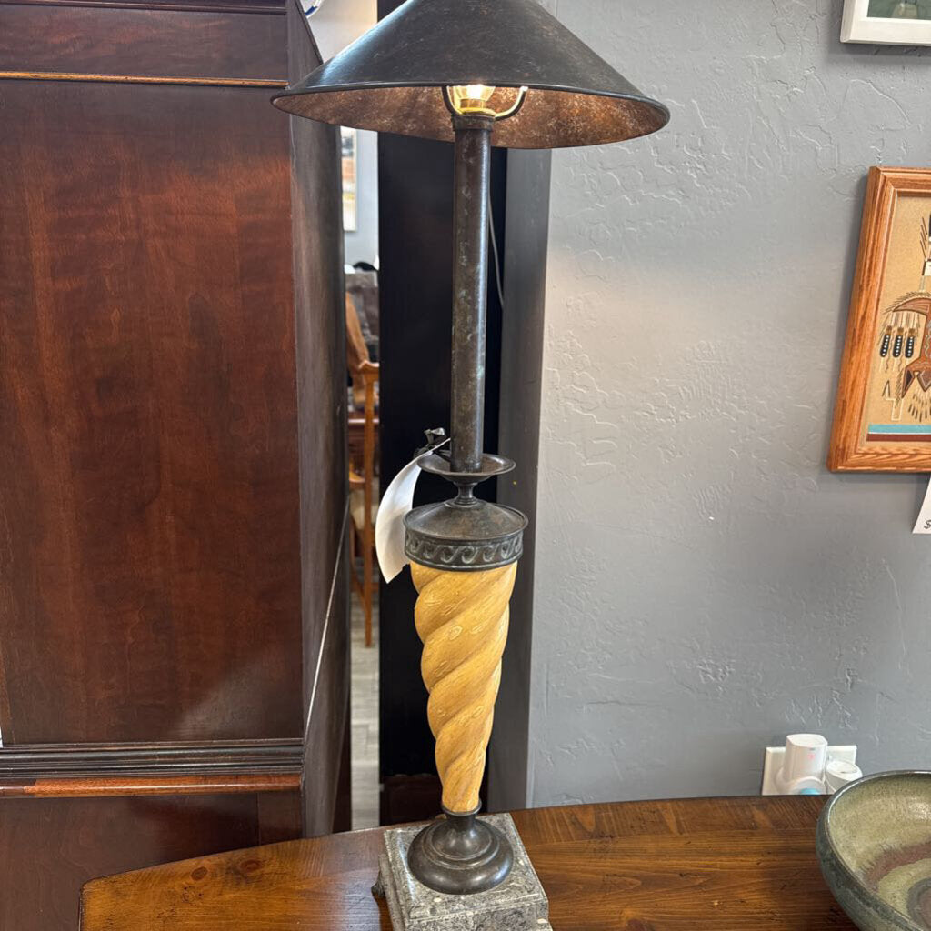 ORIGINALLY PRICED $207; Metal shade, resin body, stone base with detailed feet