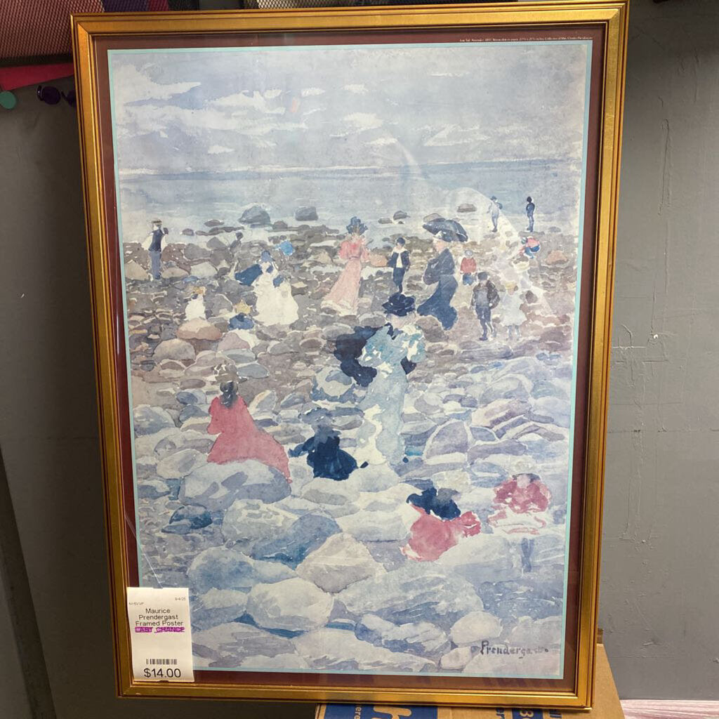 ORIGINALLY PRICED $38; Large framed poster of Low Tide Nantasket by Maurice Prendergast.
