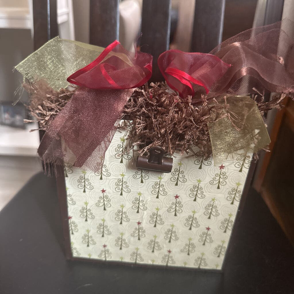 Wooden block with clip and ribbon