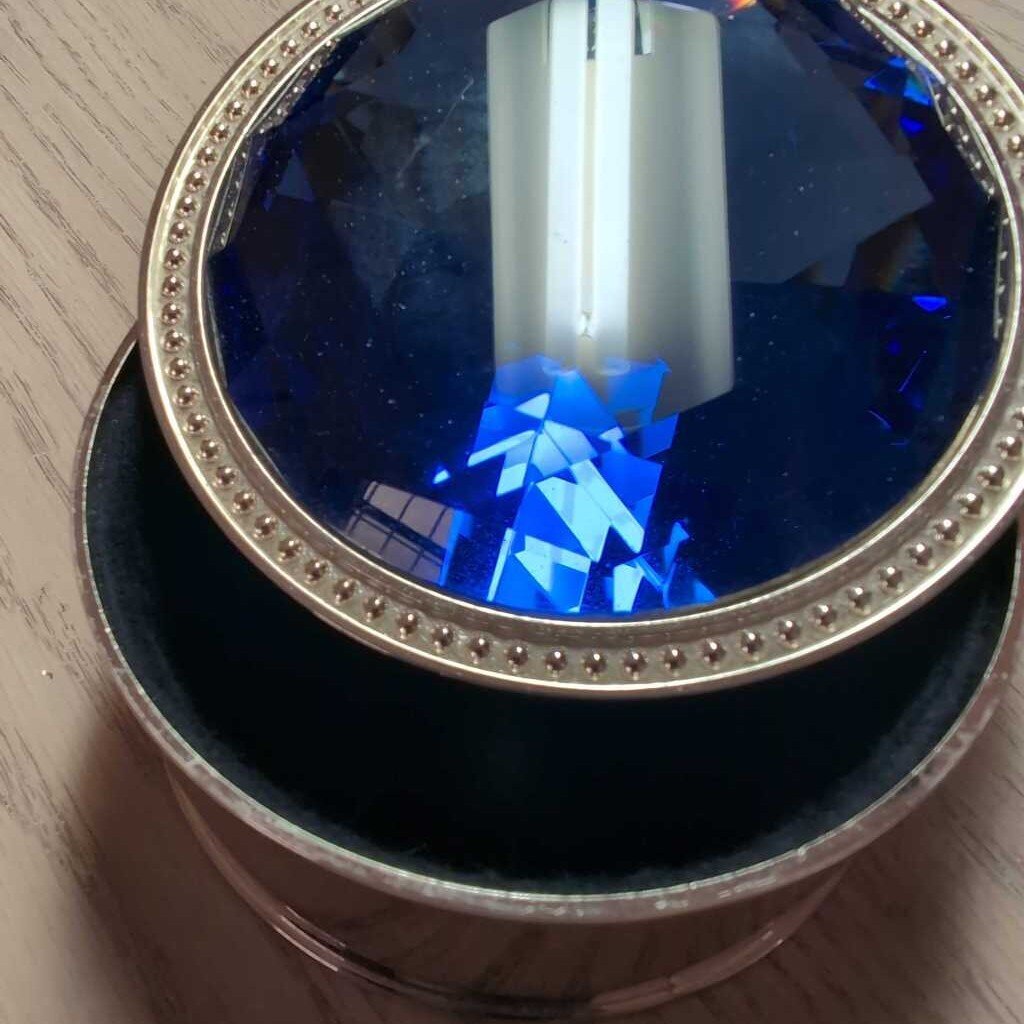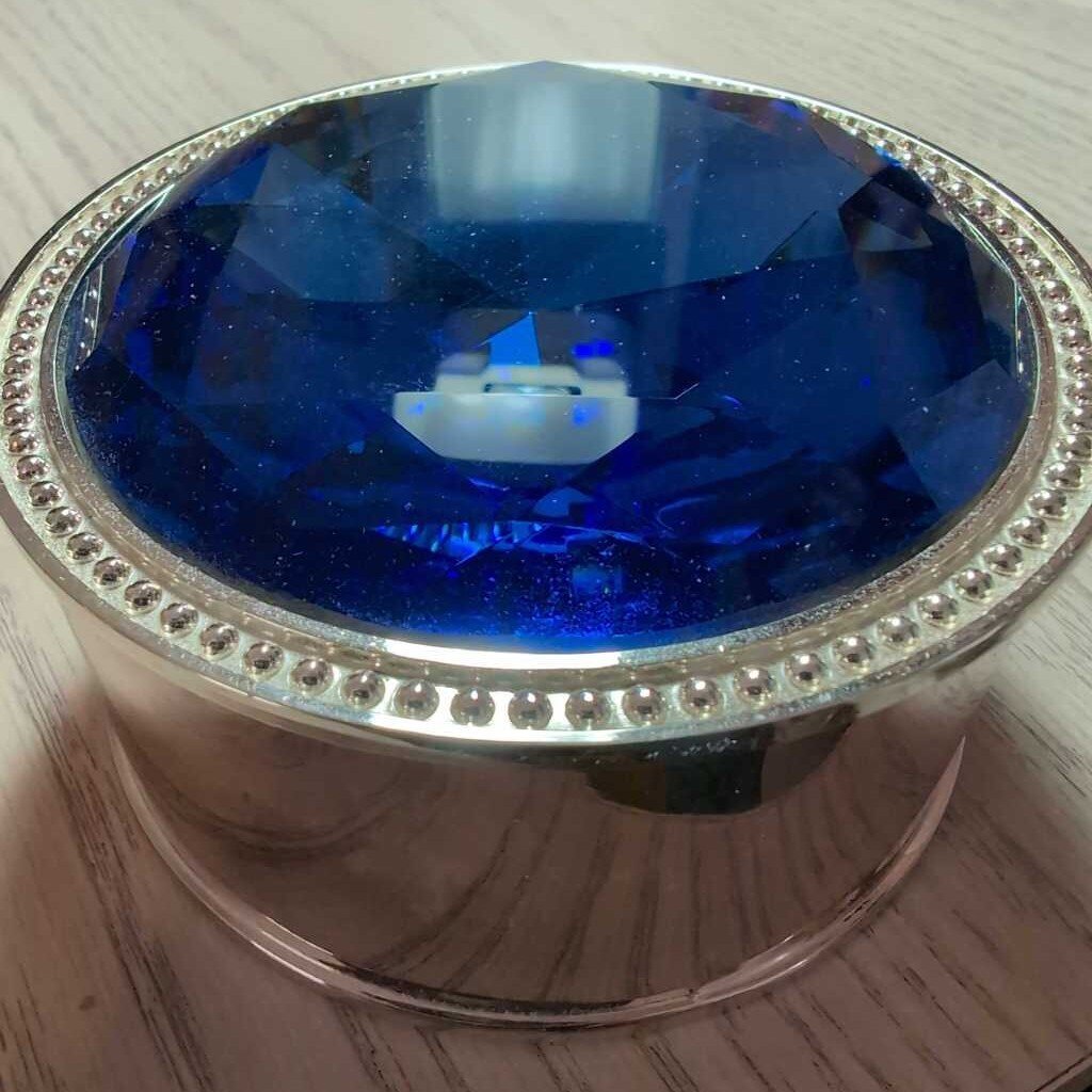 Round 2"Tall Silvertone Container w/Blue-Jeweled Lid