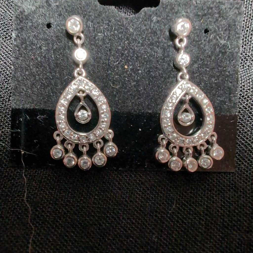 n/a Pierced Earrings 1" Long Silvertone w/Rhinestones
