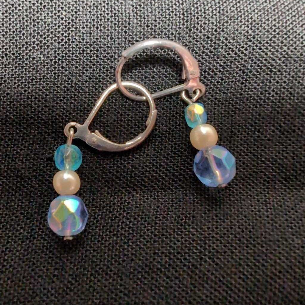 n/a Pierced Earrings .5" Long Pearl & Blue