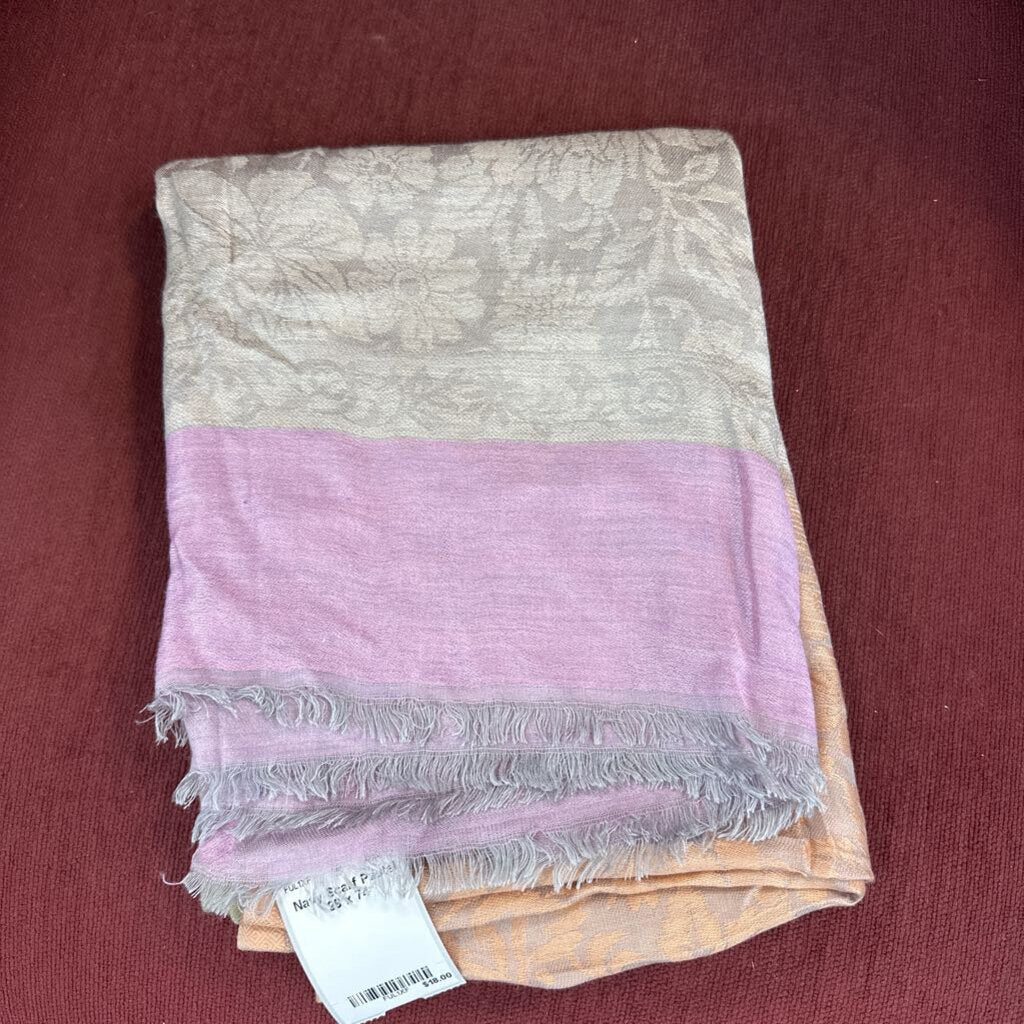 Pastel colored stripe floral jacquard with mini self fringe ends.