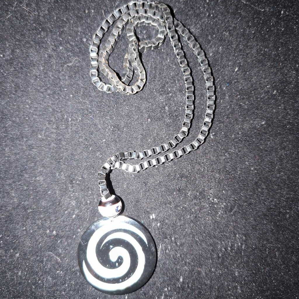 Necklace 24" Long Black w/1.5" B&W Swirl Pendant