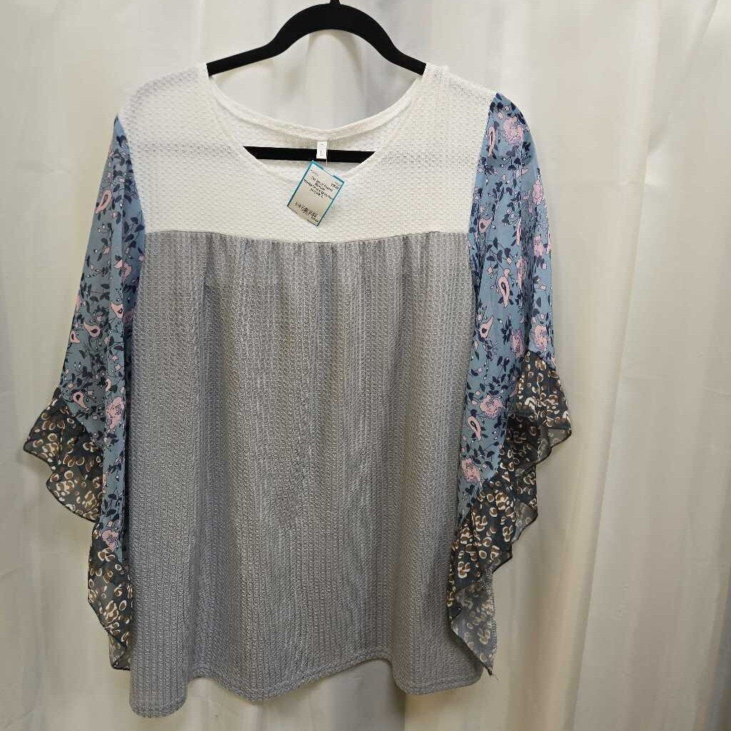 No label found Blouse L White/blues/gray/beige/pink