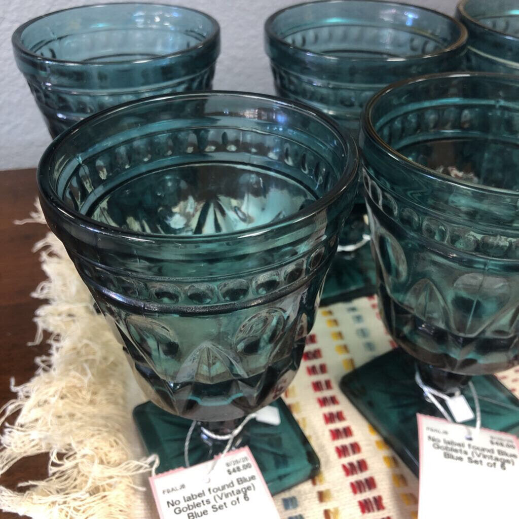Vintage Blue Goblets, set of 6. Each size: 5.5" T x 3.5" W. Perfect for Fall!