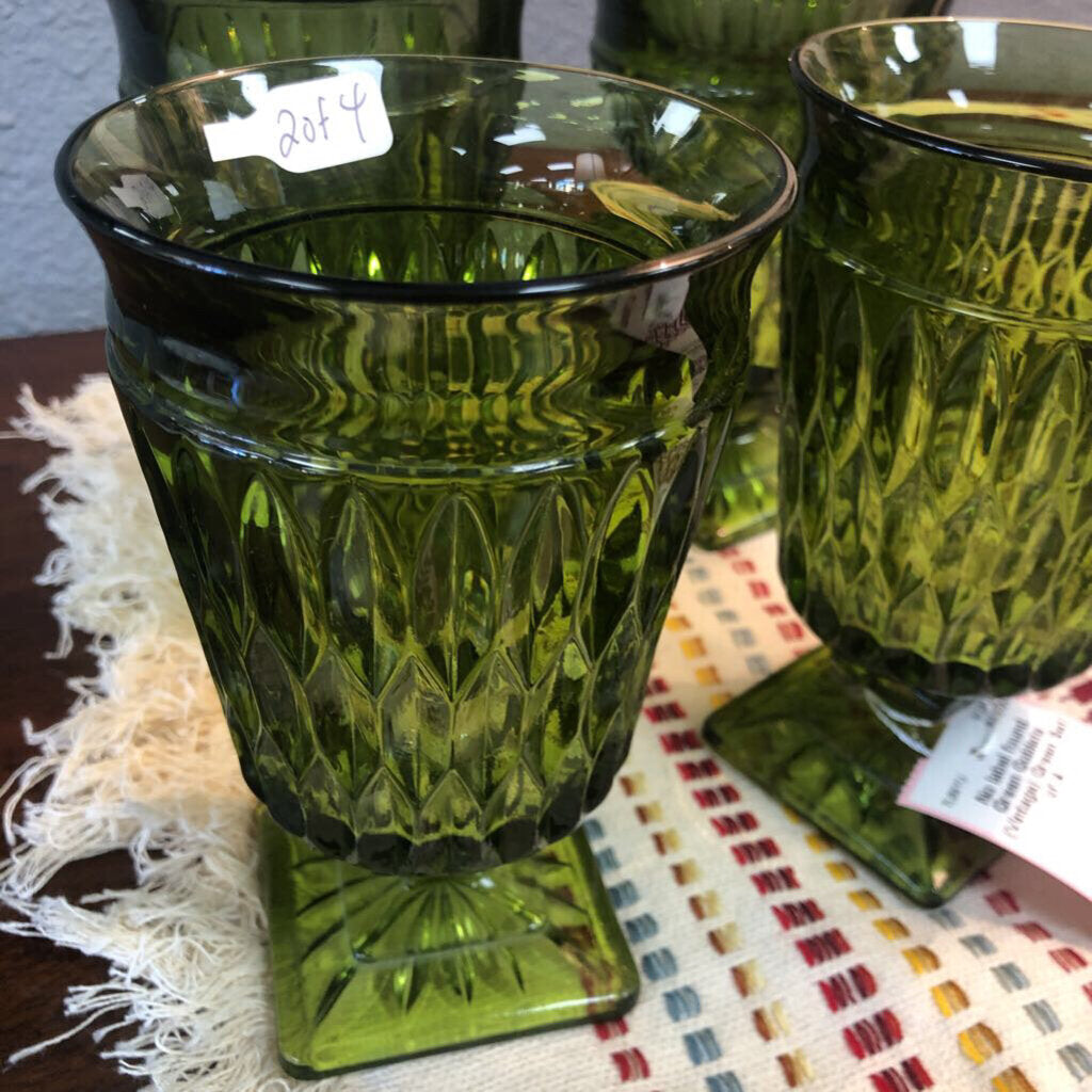Vintage Green Goblets, set of 4. Each size: 6"T x 3.5"W. Perfect for Fall!