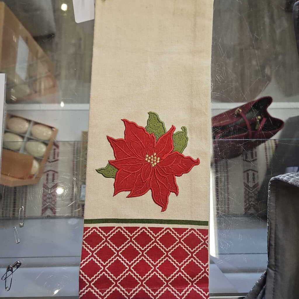No label found Poinsettia tea towel 16" x 26" red/beige
