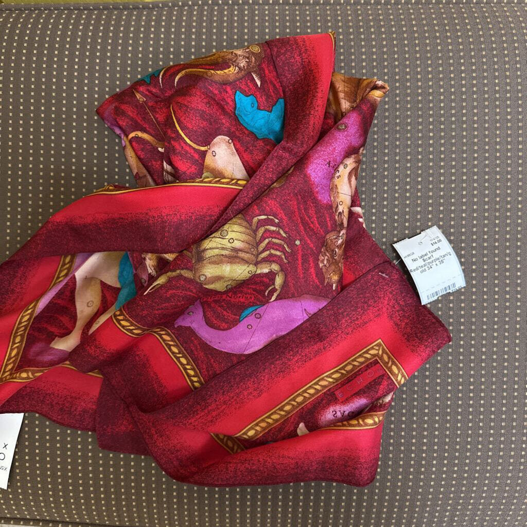No label found Scarf 34" x 35" Red/teal/purple/tan/gold