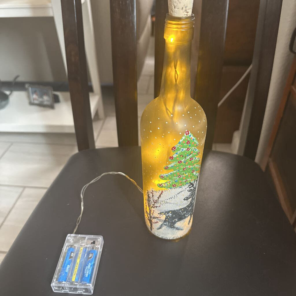 Lighted bottle with Christmas scene