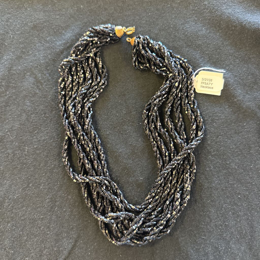 Multiple twisted strands of black beads