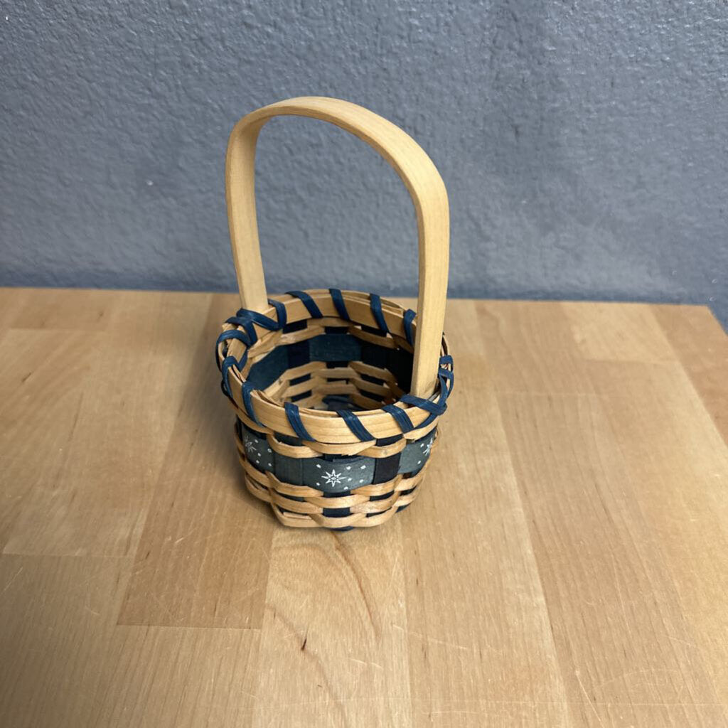 Small brown basket with blue and white snowflakes