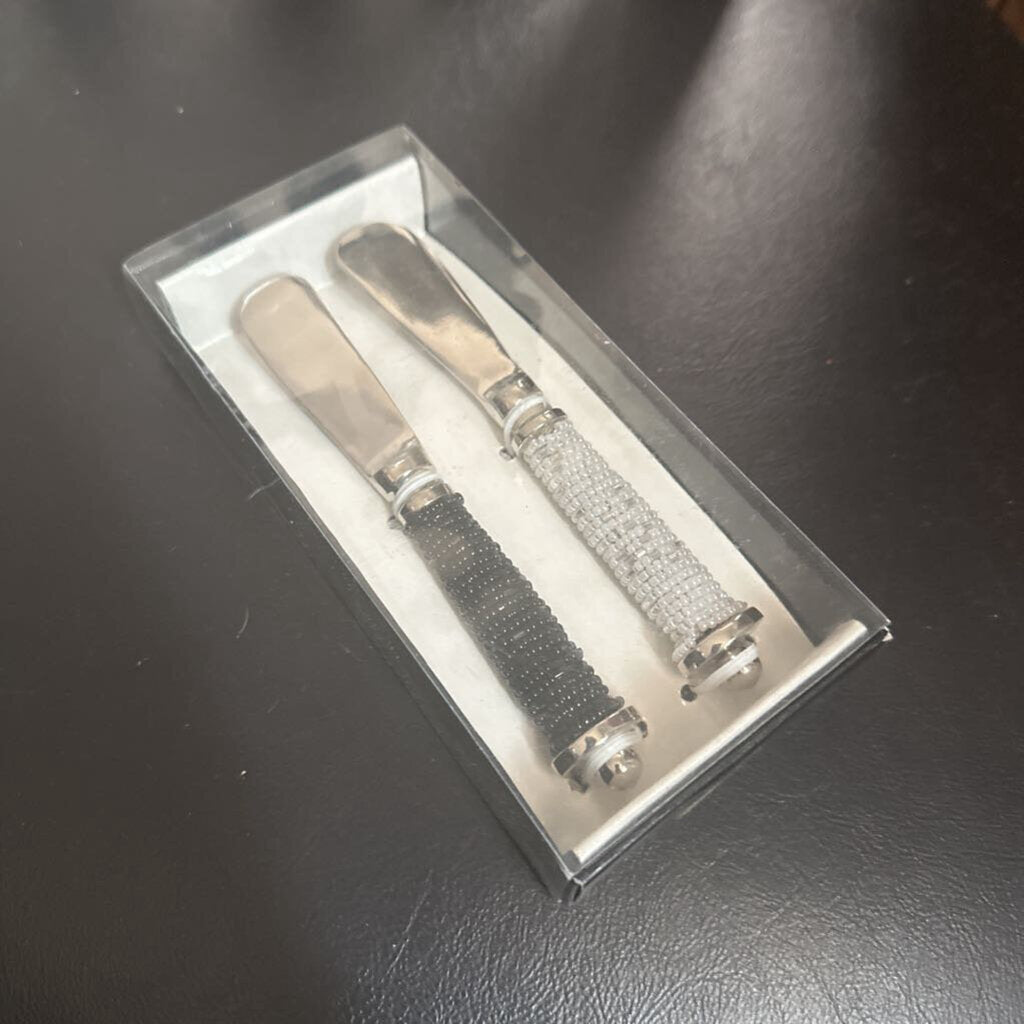 Boxed set of 2-silver with black and white beads on ends.