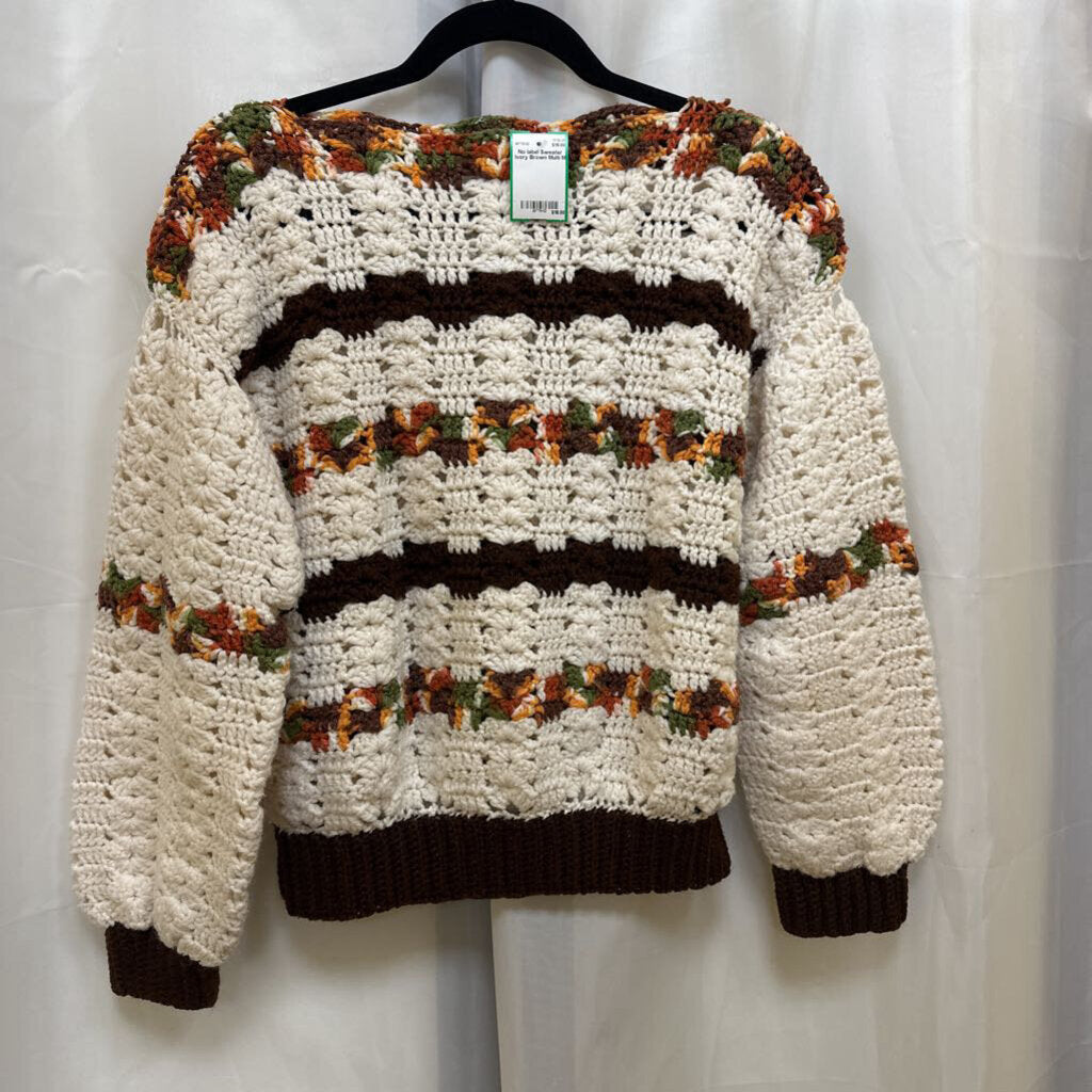 Long sleeve pull over hand knitted open weave stripe sweater with Bateau neckline.
