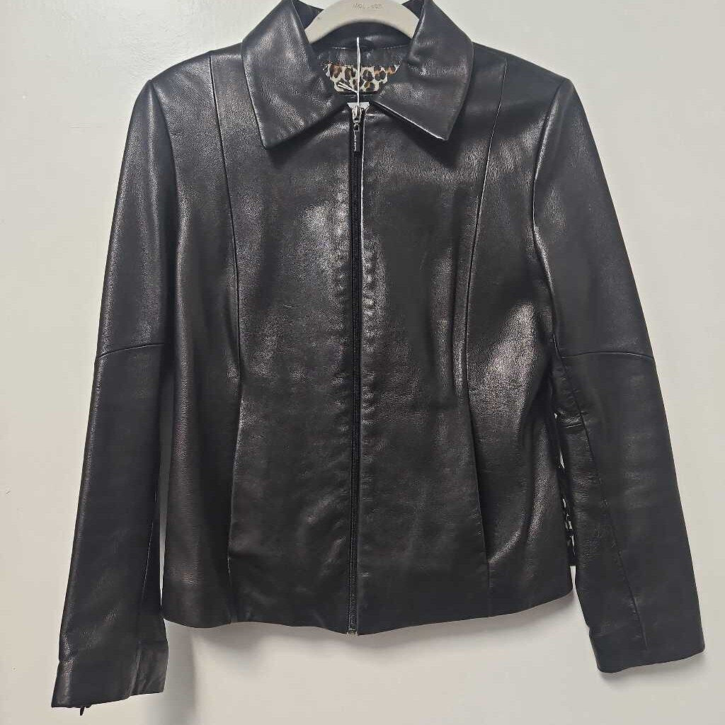 Genuine Leather shell, zip front and pockets. Has zipper on cuffs and at waist. Excellent condition!