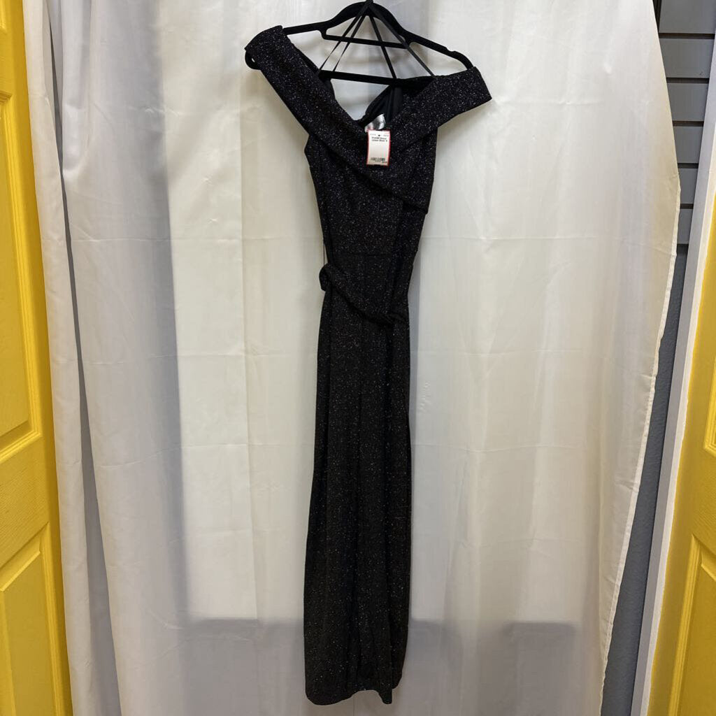 Sleeveless slinky glitter knit pull on jumper with self belt tie and off the shoulder wrap detail.