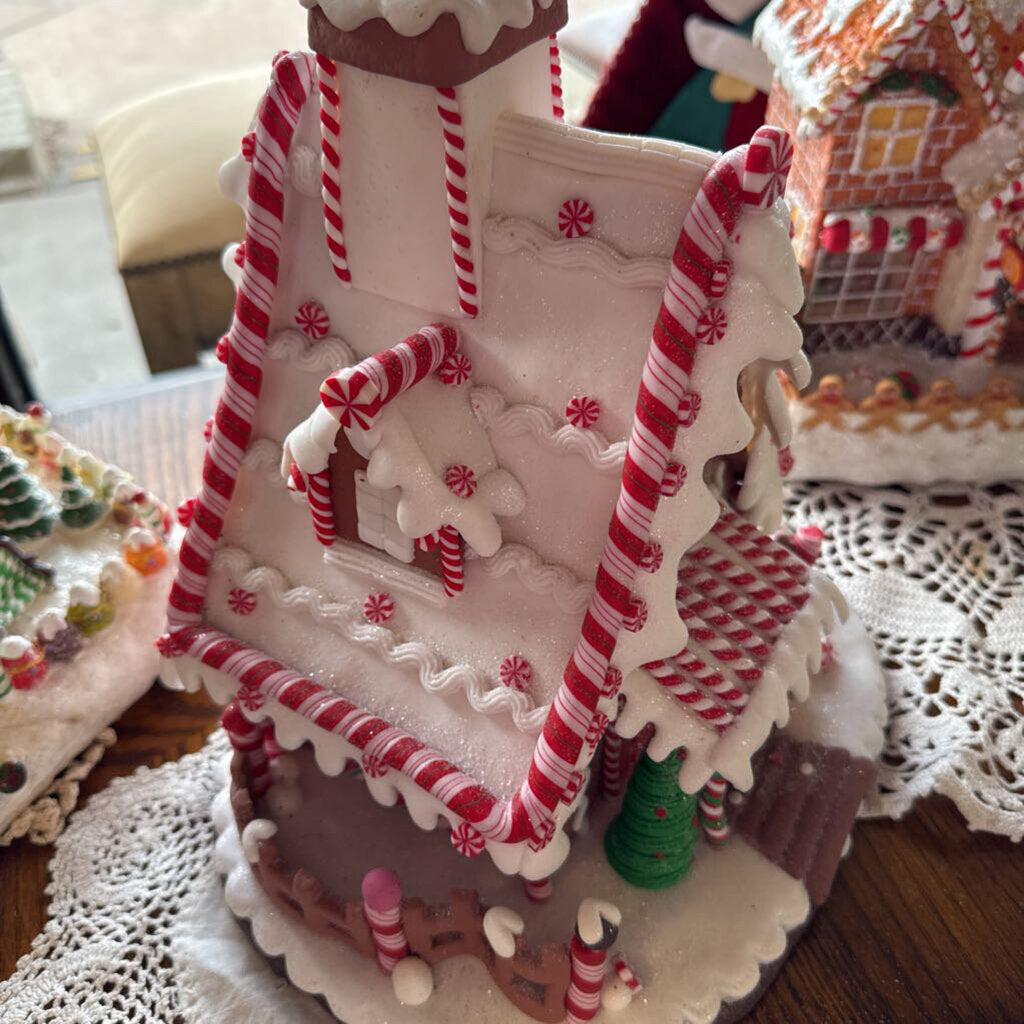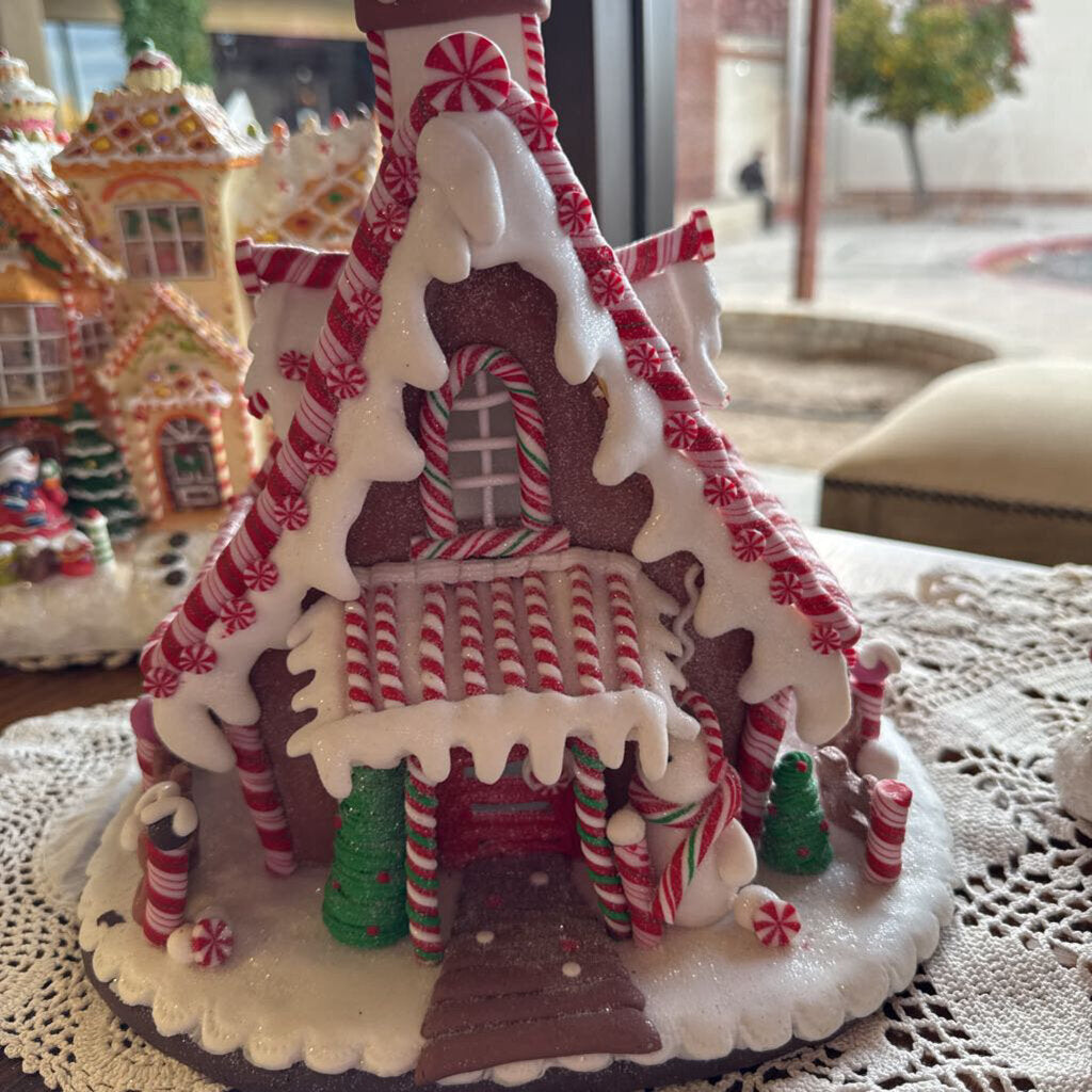 Lighted peppermint ginger bread house. Battery opporated and fiber optic.