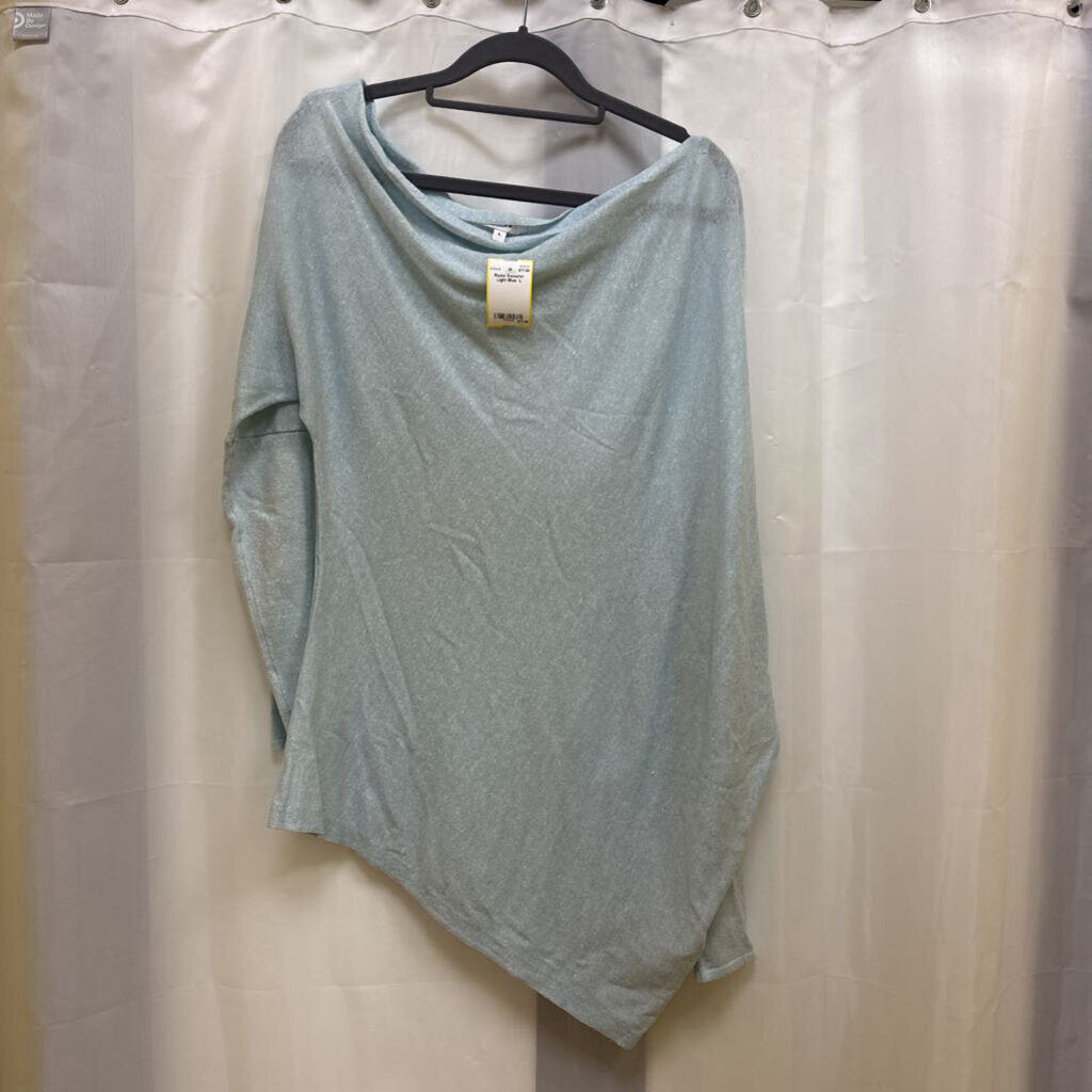 Long sleeve pullover with diagonal hem , draped neckline , textured