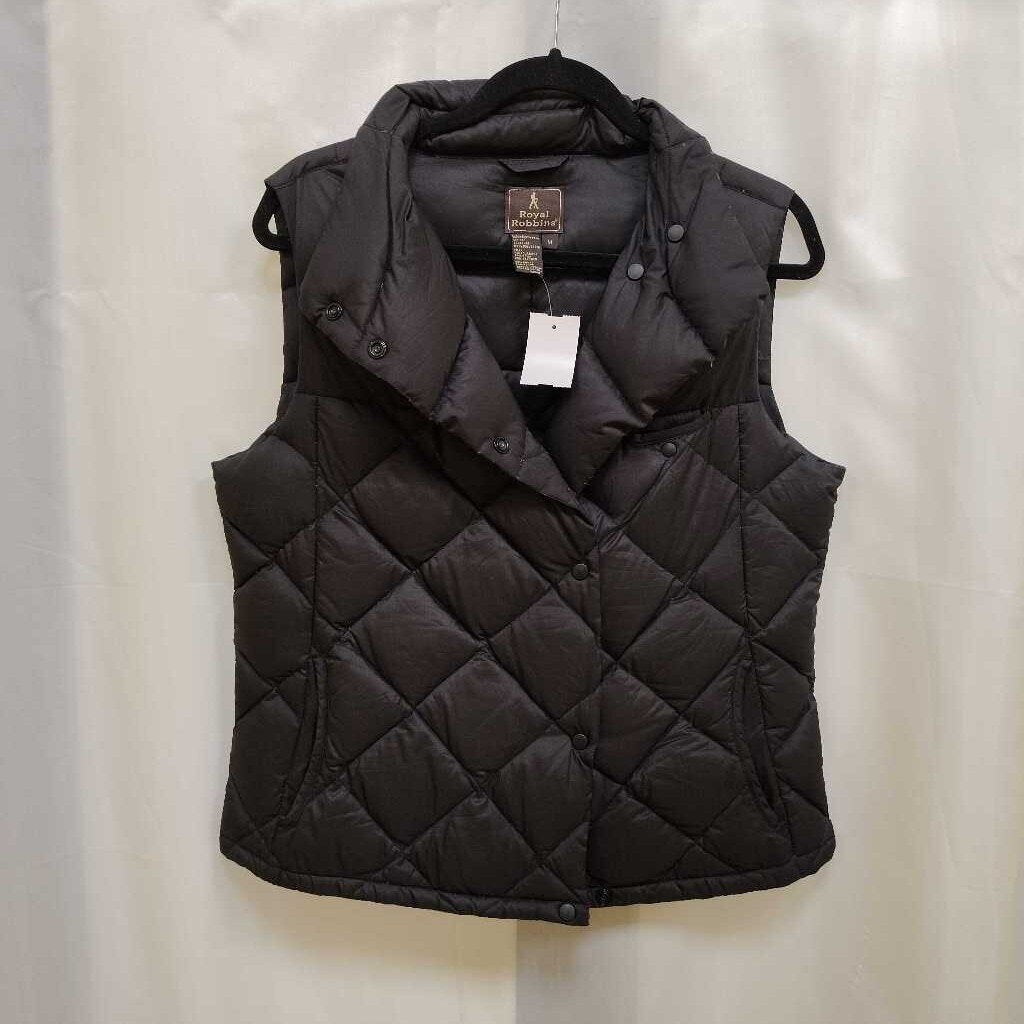 Sleeveless snap front quilted down filled puffer vest with front pockets.