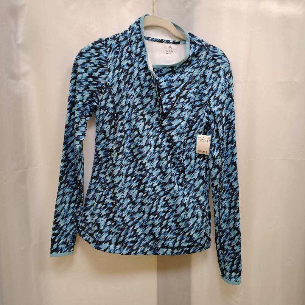 Long sleeves, pull on, zipper at chest, zippered pockets, falls past waist.