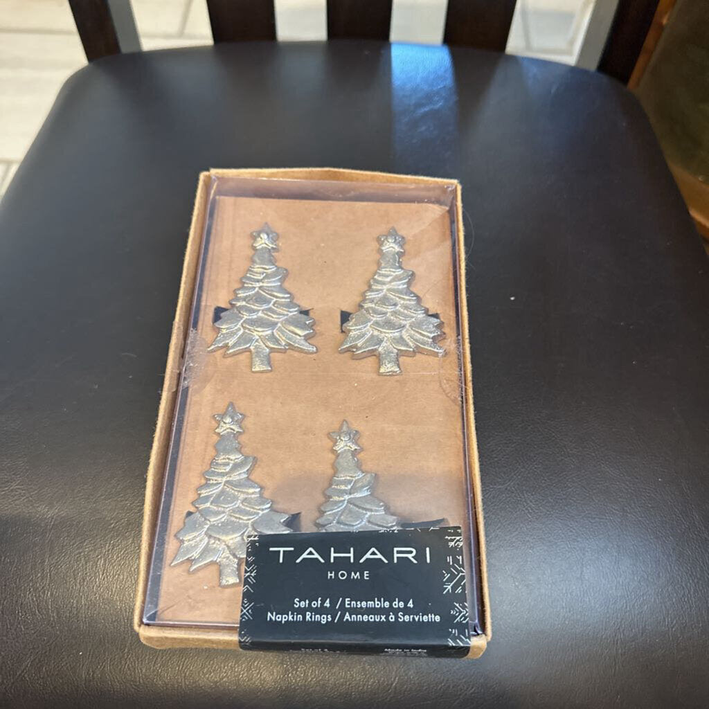 Set of 4 silver Christmas tree napkin holders.