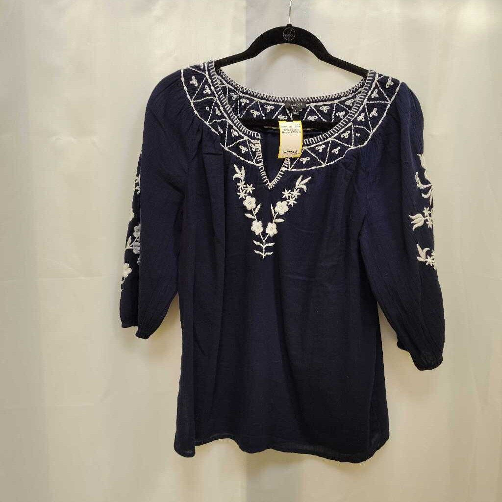 Talbots Blouse S Navy and White