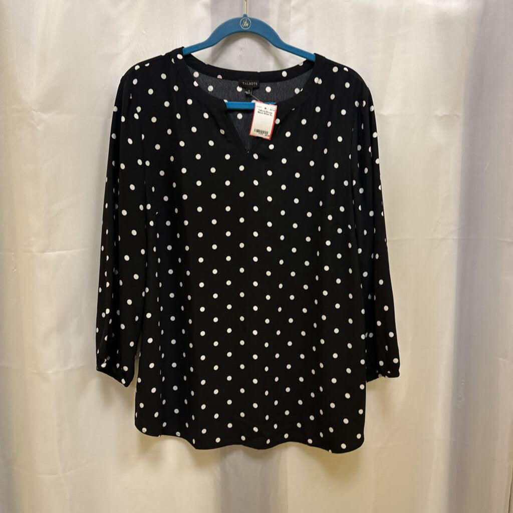 Long sleeve polka dot printed woven pull over boxy long blouse with V- neckline.