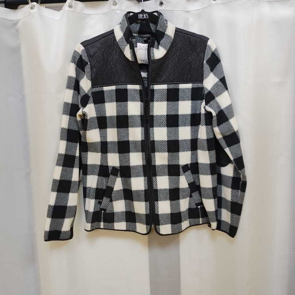Long sleeve buffalo checked zip front with pockets and elbow patches