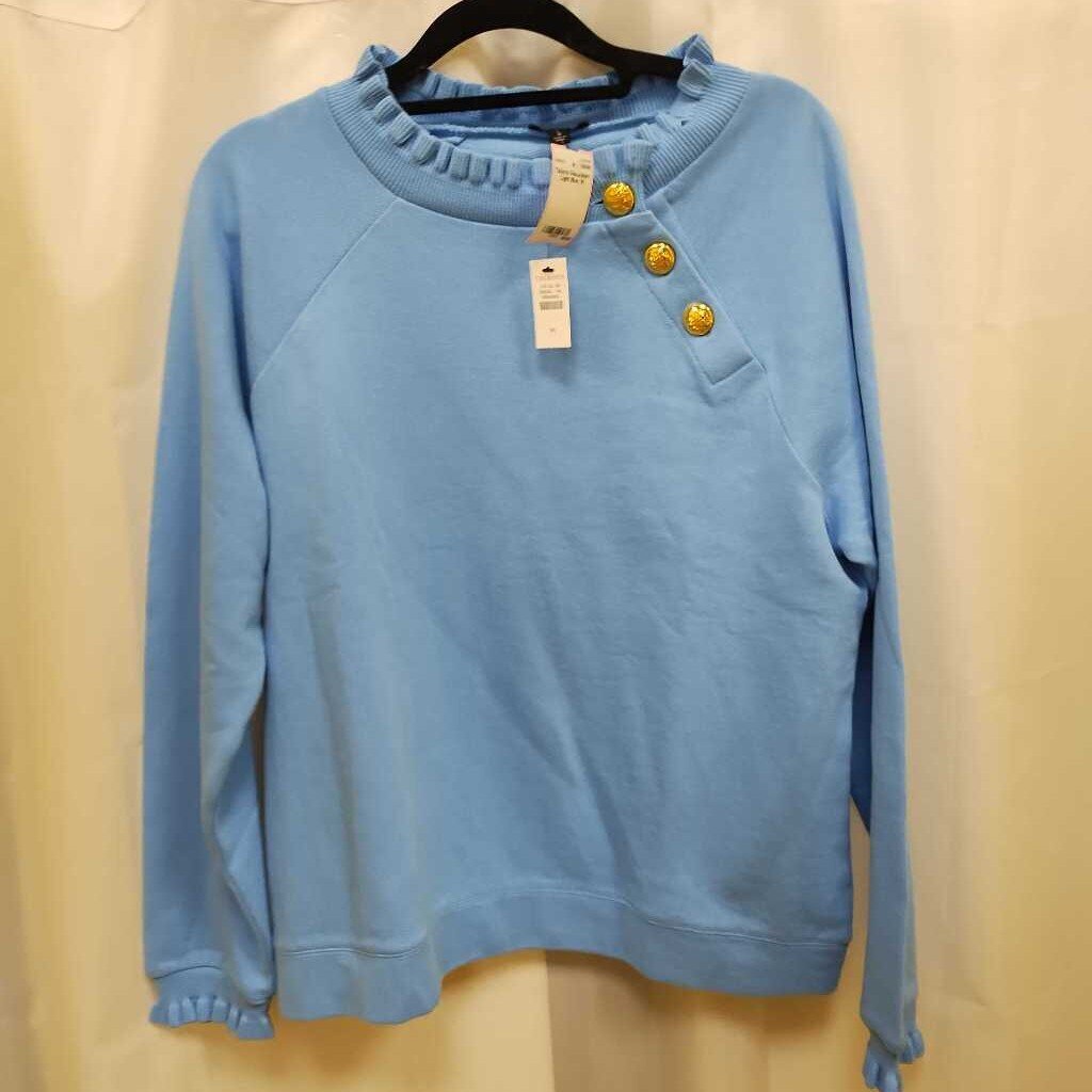Long sleeve pullover with ruffle collar and 3 gold buttons