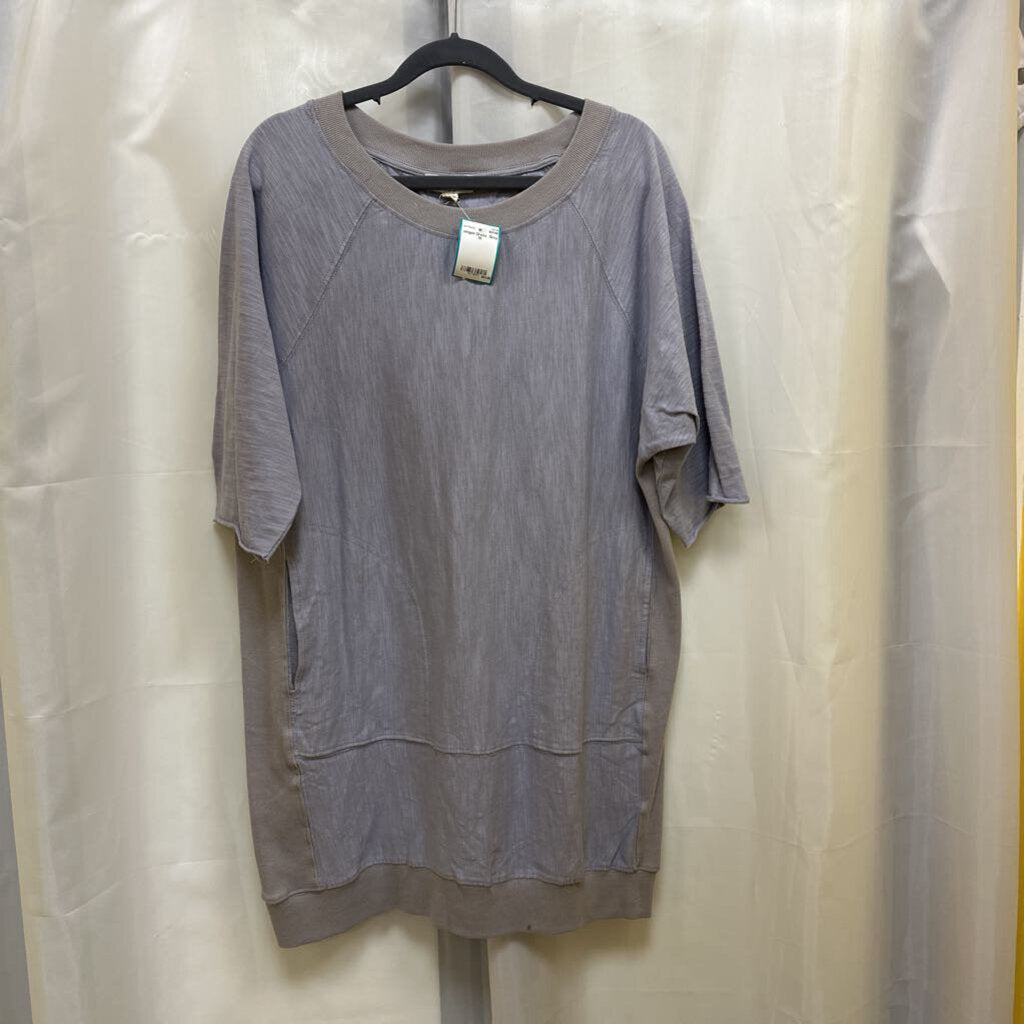 Short raglan sleeve pull over solid knit short tent dress with side seam pockets and banded hemline.