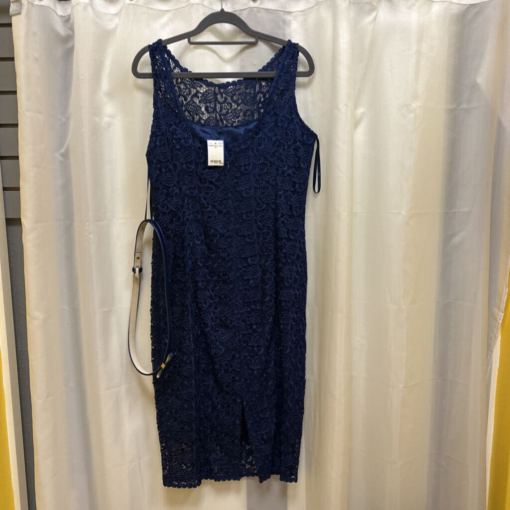 Sleeveless below knee lace overlay with belt