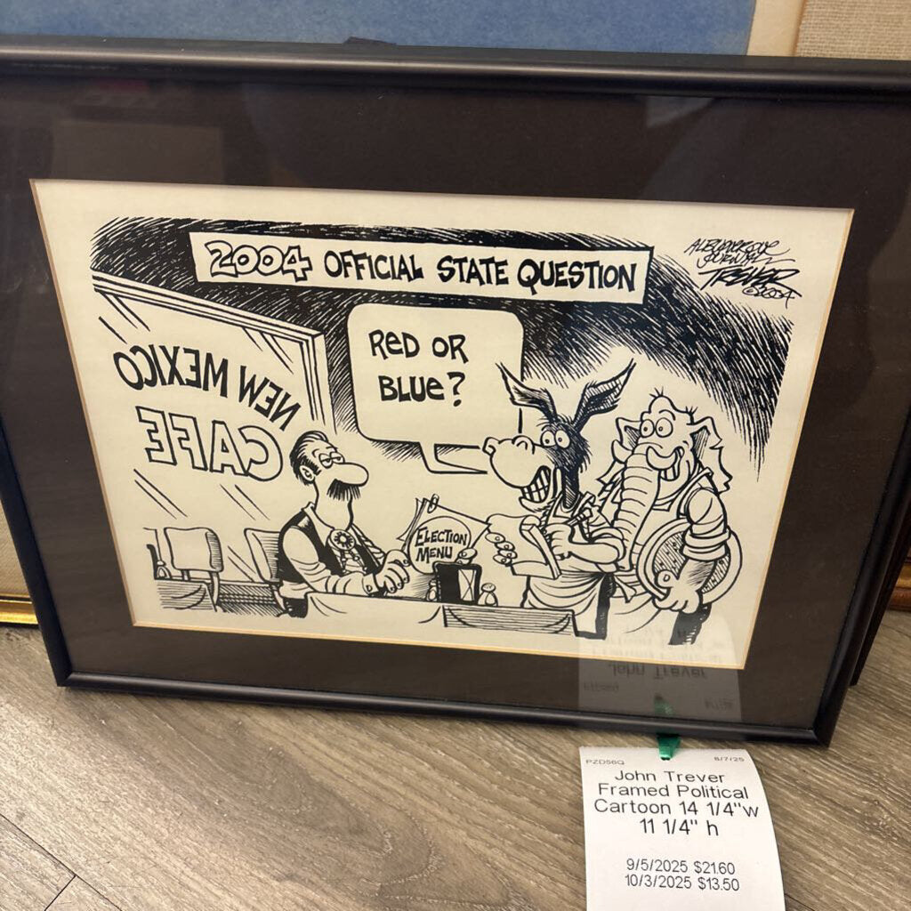 John Trever Framed Political Cartoon 14 1/4"w 11 1/4" h black white
